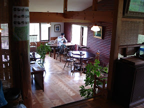 最特別的是,從外頭進入餐廳內必須經過三道門,進入最裡的一道門後,一道階梯往上,再往下進人餐廳,我想,這重重的設計,可能是為了擋去寒風!冬天聽說可零下20度!