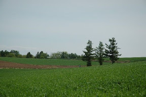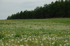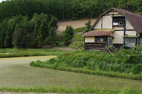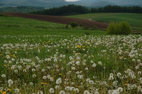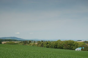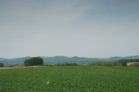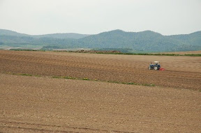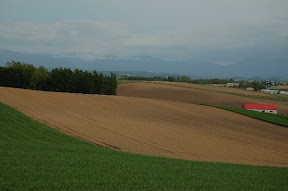 拼布之路: 我們是中午回到美瑛,租完車已中午11點了,心想,拼布之路上有許多餐館,經過時再找餐館!結果,餐館都關門休息!還好途中經過一處處自然的花田、田野,農人們正開著大型機具進行翻土,別有一番風味,眼睛吃風光止餓!