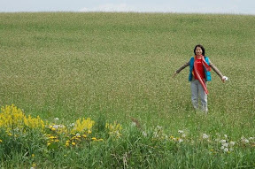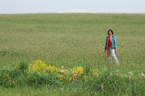 遍野小白花: 來到日本,第一次看到 "花田"!應該是沒人耕種的田地,小白花們在此落地生根!自然的花田喔!親眼看到,才能感受自然的美與力量,在取景的同時,我跟老公口裡一直說著,怎麼會有這麼美的地方,太美了!以後看不到怎麼辦!太感謝上帝讓我們遇見這片地!感動!