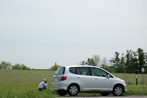 租車遊美瑛之拼布: 雖然跟昨天的車車一樣1300CC,但沒有MAP CODE,我們又不懂日文,幾乎不會操作,還好,租車老闆已經輸入車站為回家目標,所以,可以隨便開車亂逛,然後,再導航回家喔!