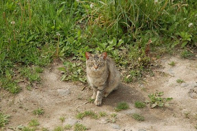 老公看到3隻貓,這是其中一隻比較不怕我的小花貓,他可能很少看到人在他家門口拿著黑黑的東東一直走來走去。花貓對我粉好奇,離我越來越近,反而是我不敢動,怕嚇到他。可能日本的貓真的比較幸福,不怕人。